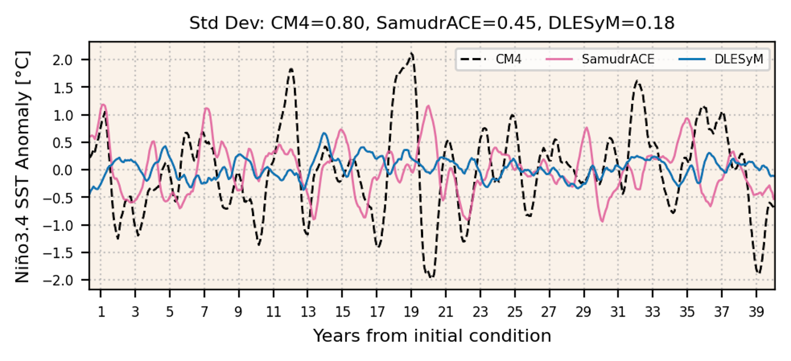 With models like SamudrACE, scientists can run large ensembles of simulations to better quantify uncertainty and understand the full range of potential climate outcomes. It allows for the rapid exploration of different climate scenarios and "what-if" questions (e.g., “How would a major volcanic eruption affect global temperatures over the next decade?,” “What are the chances of multiple extreme El Niño events occurring within a short timeframe?”) that would be computationally prohibitive with traditional models.